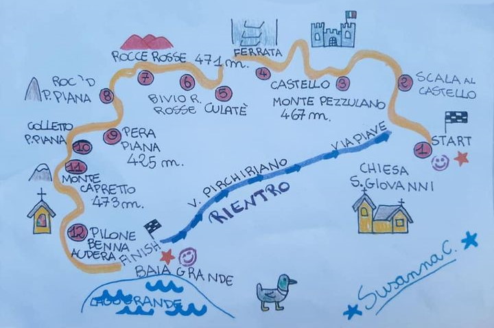 Mappa con i diversi punti del percorso, partendo dalla Chiesa di San Giovanni e terminando sulla riva del Lago Grande di Avigliana