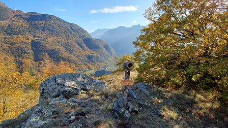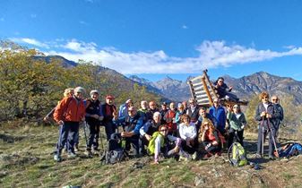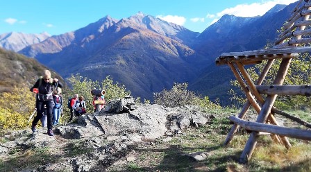 Il riscaldamento globale e il conseguente innalzamento delle temperature ha permesso di prolungare la stagione escursionistica. Per l’ultimo appuntamento della TAM torinese, il meteo è stato clemente. Da Torille, frazione di Verrès, superata la Cappella di S. Barbara, saliamo su stradina asfaltata, poi lastricata e molto ripida, e quindi mulattiera.