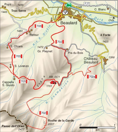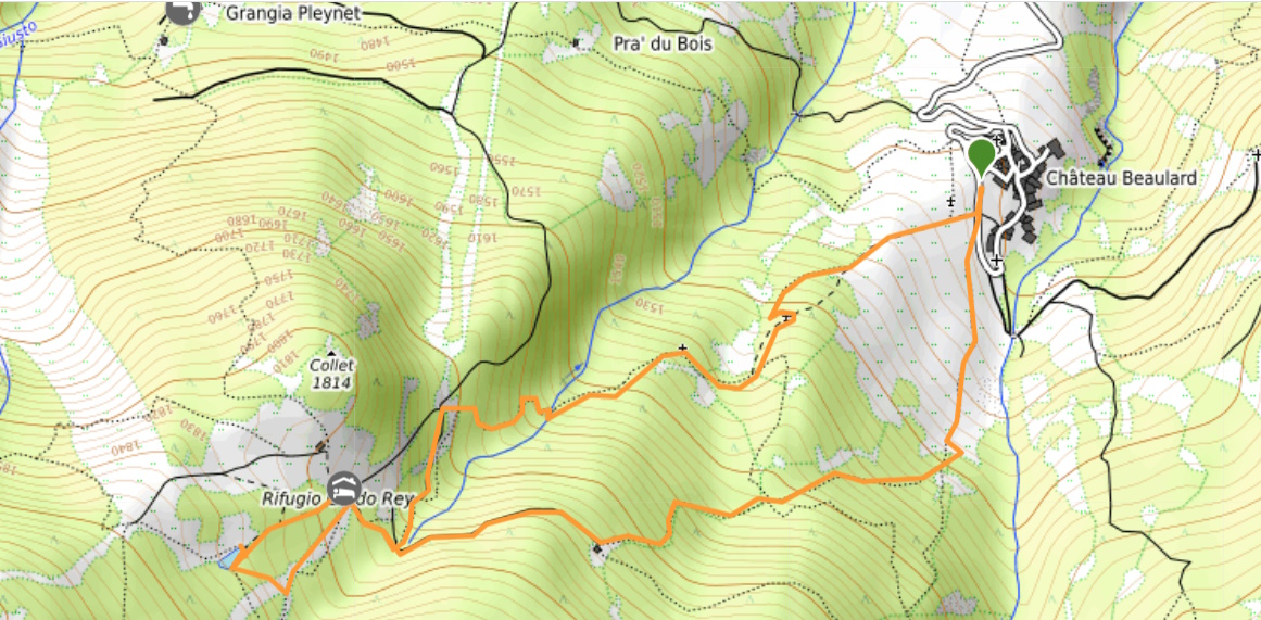 Descrizione itinerario: da Chateau Beaulard imboccare il sentiero Balcone 702a (dislivello 300 mt.) per il rifugio Guido Rey direttamente dal posteggio. Gradatamente entrerete in uno splendido e silenzioso bosco di conifere – ottimo quando c’è il sole caldo che picchia sulle teste – e inizierete a salire verso la meta. Alcuni punti saranno un po’ ripidi, soprattutto quando raggiungerete il “guado” del ruscello (in realtà c’è un ponticello di legno) perché dopo il ponte la mulattiera si impenna e ci si aiuta con le corde che troverete legate agli alberi e alla roccia sulla vostra sinistra. Questo pezzo del percorso non è particolarmente difficile in salita, ma richiede attenzione al ritorno. Continuando a salire raggiungerete il sentiero che parte da Beaulard, che è molto più largo, sempre in salita ed è percorribile solamente con i fuoristrada. A questo punto del cammino quando vedrete quello che rimane di una vecchia stazione della seggiovia in disuso da anni – perché sembra che le piste sciistiche fossero molto difficili e di conseguenza l’affluenza di sciatori era molto bassa – sarete molto vicini alla meta. Ancora qualche ripida salita sulla strada sterrata e scorgerete il tetto del rifugio Guido Rey.