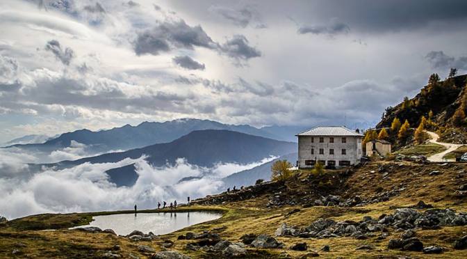 Per tornare al rifugio senza genti, da rifugista gestore custode devo ammettere che è bello essere qui con nessuno intorno. Anche se adesso cominciano ad essere un po’ tanti i giorni… È una sensazione piacevole quando, dopo una giornata di lavoro intenso nella quale c’è stato un andirivieni a tratti forsennato, il rifugio si svuota. Le prime volte che si verifica questa condizione di rapido spopolamento, si è colti di sorpresa, perché tutto avviene in un attimo senza che ci sia modo di rendersene conto e, con sbigottimento, ci si accorge che non c’è più nessuno. Non è strano che accada, a pensarci un attimo la vita di ognuno ha ritmi ben più precisi di quanto siamo, tutti, disposti ad ammettere: il lavoro dal lunedì, quindi il fine settimana a disposizione, ma la domenica sera si deve rientrare, quindi ovvio che dopo le quattro del pomeriggio il rifugio si svuoti rapidamente. E nel momento in cui in rifugio cala il silenzio, esattamente in quell’istante, il rifugista torna ad essere padrone di sé stesso e dei suoi angoli preferiti, riprendendo possesso di piccoli spazi che fino ad un’ora prima erano a disposizione di persone arrivate, anche, da molto lontano: normalmente ci si siede ad uno dei tavoli approntandolo per la merenda. Se ci fosse qualcuno ad osservare, noterebbe una merenda strana perché non capirebbe se dolce o se salata, vedrebbe di tutto su quel tavolo, sia da bere che da mangiare. Per dovere di spiegazione devo precisare che, normalmente, capita che sovente la merenda sia in realtà il pranzo che non si è riusciti a fare e, tante volte, la cena che non si farà perché la merenda è andata a sballare lo stomaco, togliendoci la fame per quando sarà ora di cena. Sempre per dovere di spiegazione il “di tutto” sul tavolo è ciò che si raccatta mettendo insieme quello che è rimasto in cucina alla fine del servizio di pranzo, servizio che quasi sempre inizia una mezz’oretta prima di mezzogiorno e termina tra le quattro e le cinque del pomeriggio. Quindi la merenda serve anche per fare l’inventario in cucina, impostando il lavoro che dovrà prevedere chi vi è addetto.