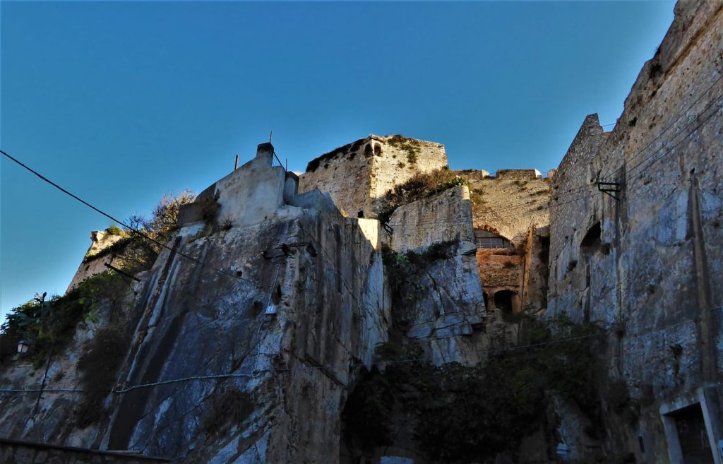 Un’opera gigantesca che ancora sopravvive in parte, nonostante l’abbandono dei vigneti in altura, la manutenzione che non si fa più, la macchia mediterranea che ha ripreso rigogliosa gli antichi terrazzi. Oggi l’isola che dal traghetto ci viene incontro è tutta verde di boschi, mentre nelle antiche fotografie appare in gran parte terrazzata e coltivata a vite.