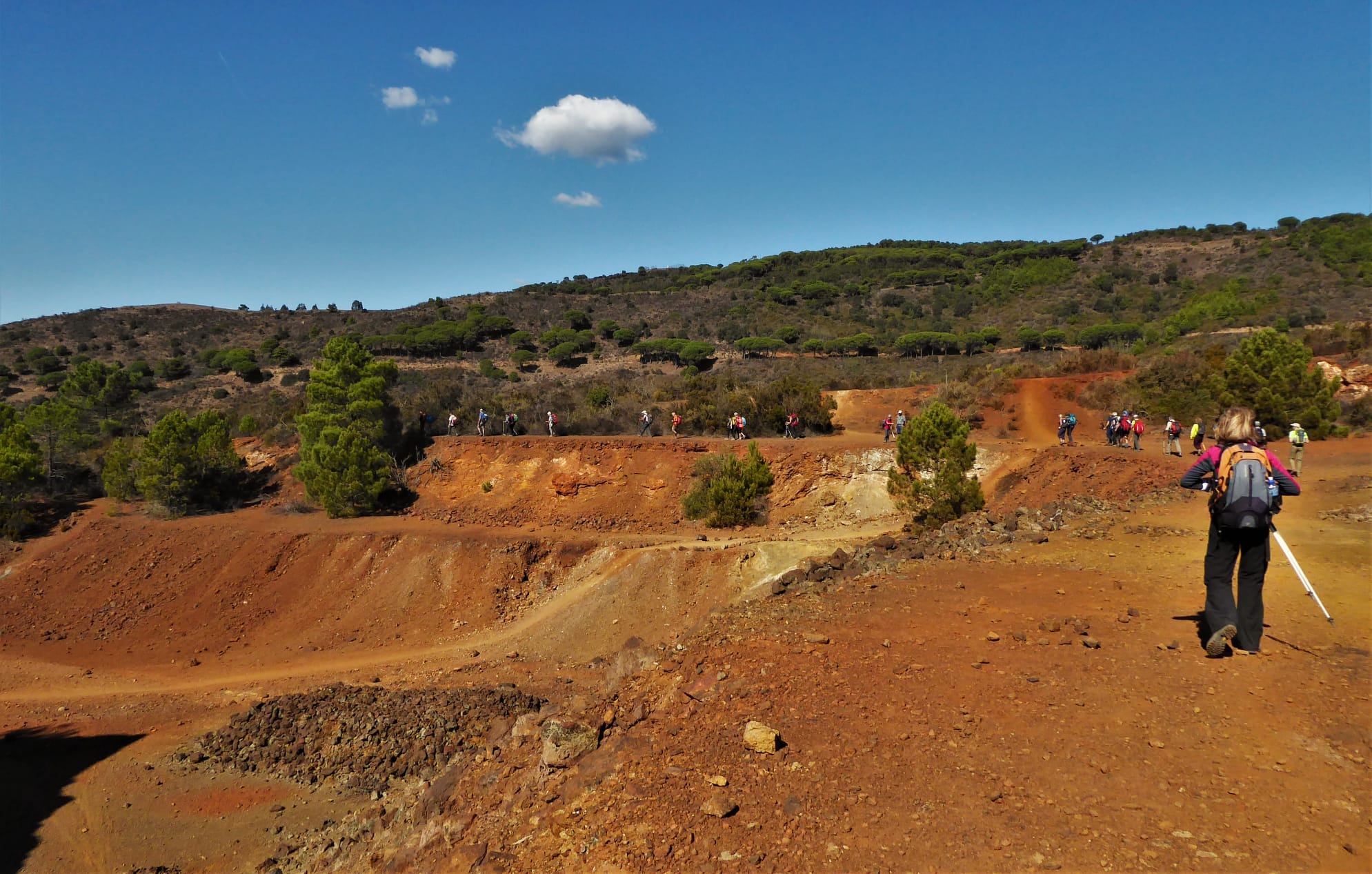 La testimonianza più impressionante dell’isola del ferro è stata l’escursione nel parco minerario di Punta Calamita, un paesaggio al tempo stesso primordiale e post- industriale. L’arrivo al sito minerario del Vallone è una sorta di discesa su Marte, i colori sono quelli del pianeta rosso; tutti i toni dell’ocra rossa, dell’ocra gialla e le nere scorie ferrose si dispiegano al nostro sguardo. Sotto la guida di Alessandro ritroviamo il piacere infantile della caccia al minerale più bello (l’edembergite, a fibre, parente dell’amianto o la crisocolla dalle sfumature turchese?), alla pietra più luccicante (pirite, cristalli di quarzo), all’ematite colore del sangue (dal greco aima, sangue), alla limonite (ocra gialla). Alessandro, che ama dipingere, cerca qui i suoi colori – e li fa cercare ai bambini nel corso di visite e laboratori guidati – così come hanno sempre fatto i pittori, i frescanti di cui vediamo le opere nelle chiese.
